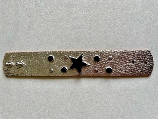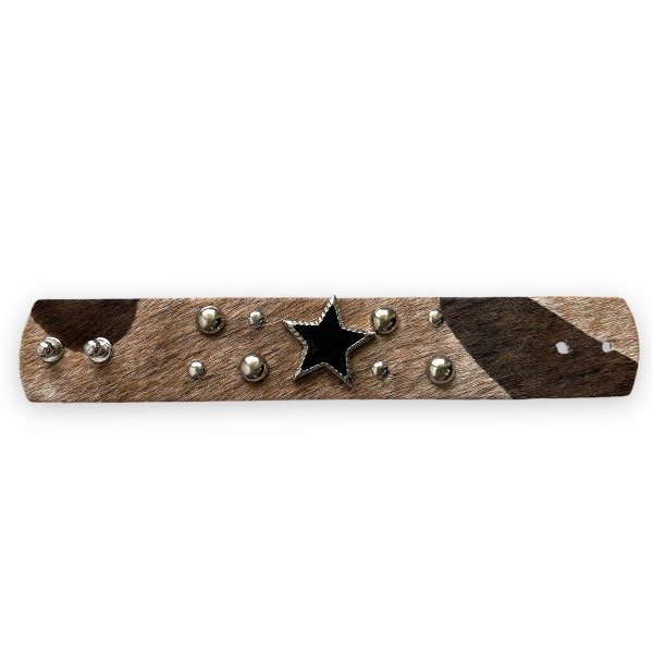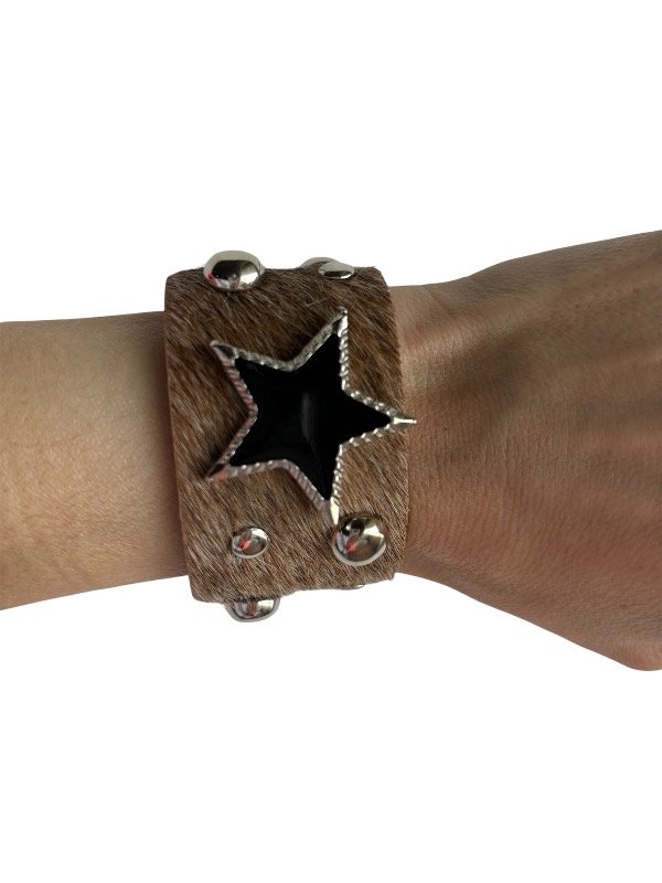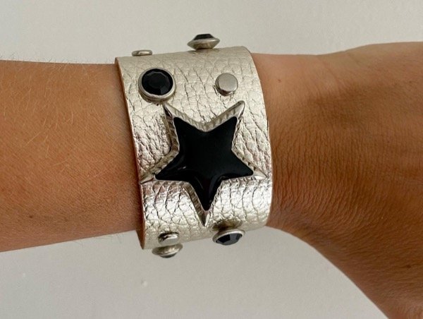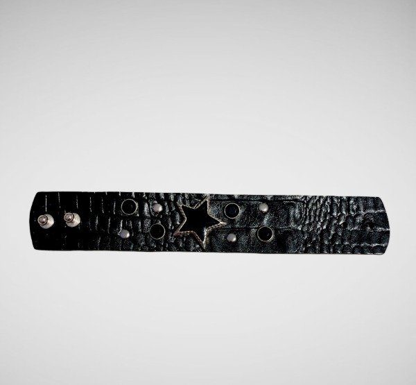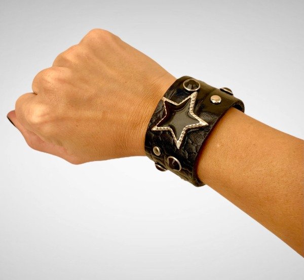 Brazalete de cuero con aplique de estrella y piedra negra